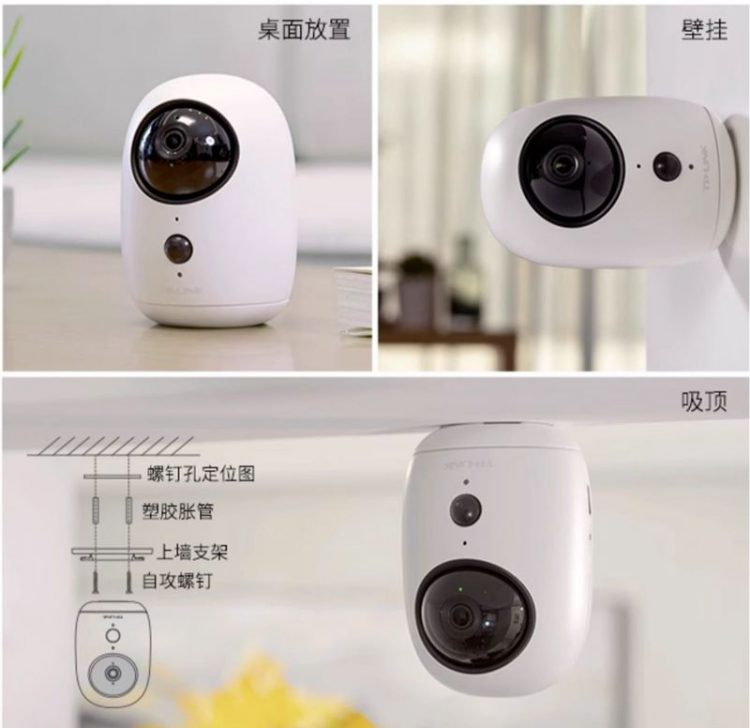 普联 TP-LINK 免插电摄像头内置 4G 流量,内置锂电,支持无线使用,一键开机便可拍摄,智能侦测,双向语音通话,用作家庭远程监控。