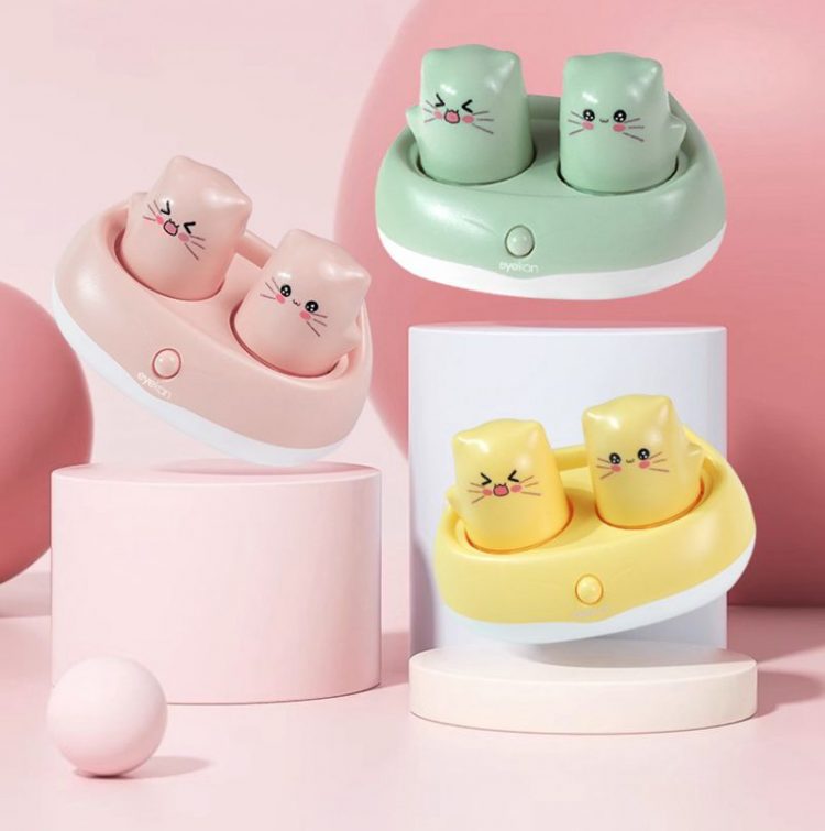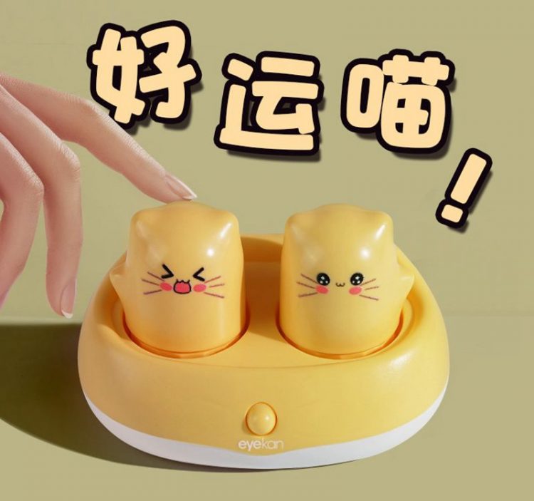 eyekan 隐形眼镜清洗器采用发财猫造型,高频超声震动清洗美瞳,去除蛋白残留,自动清洗,省时省力。