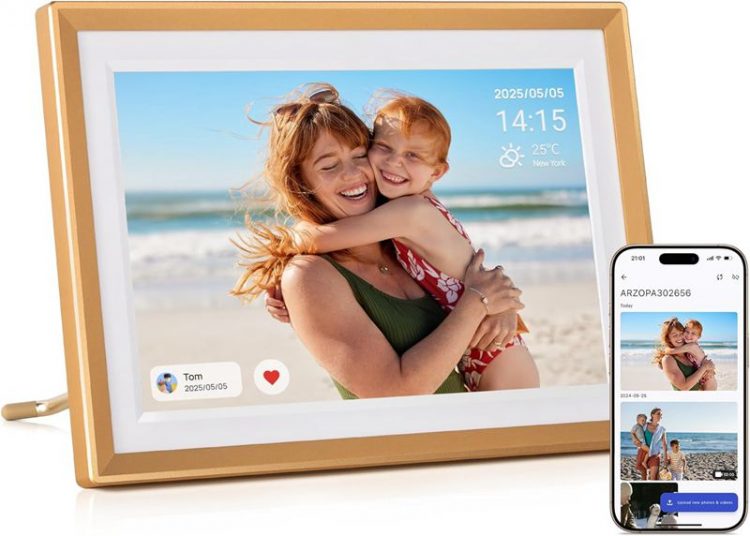 阿卓帕 ARZOPA 智能数码云相框支持触控操作,用作桌面展示相框,自带内存,支持扩充存储,也支持联网播放云存储空间相片。