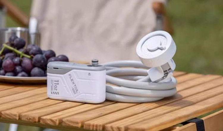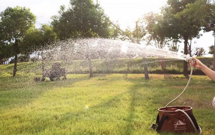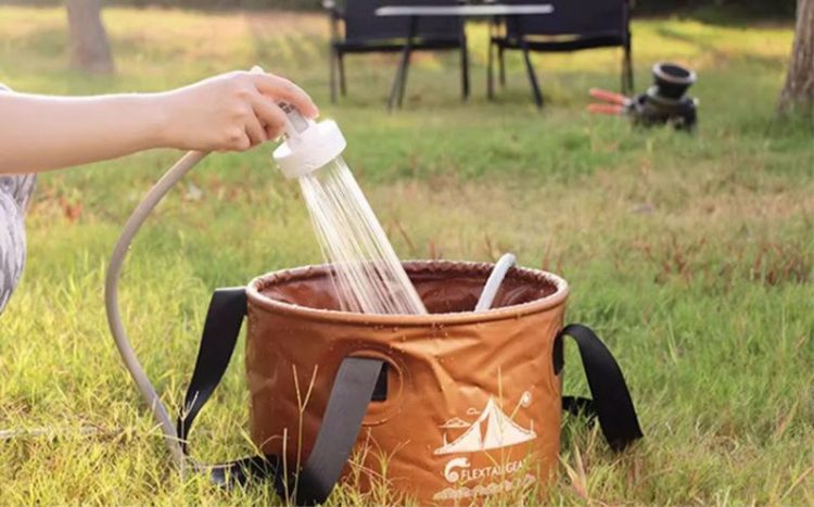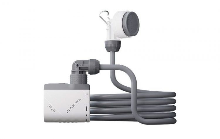 鱼尾科技 Flextail 便携式淋浴器内置锂电,防水设计,水泵深入水桶,便可在户外喷淋洗浴,也可用来清洗瓜果蔬菜和污垢。