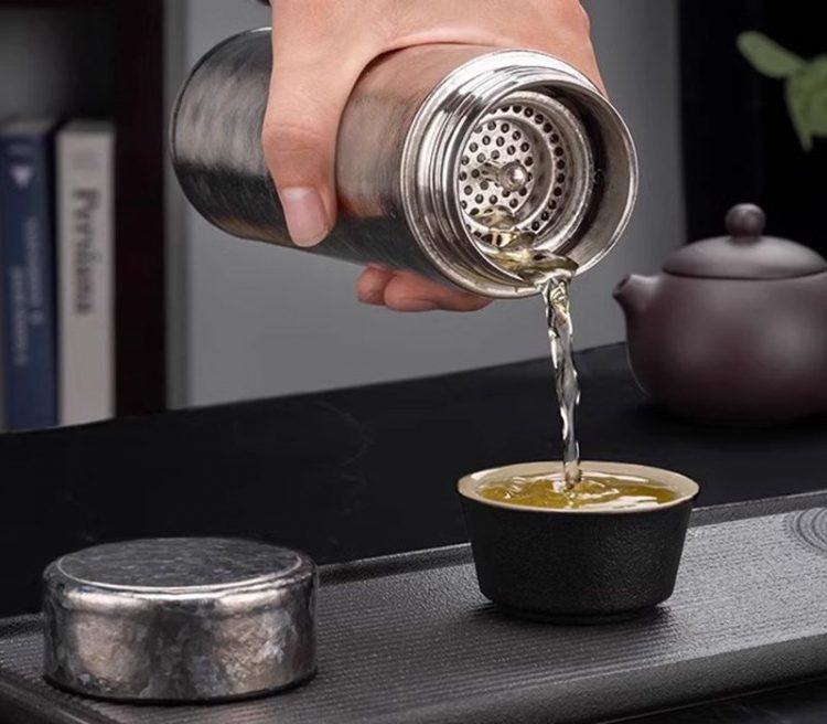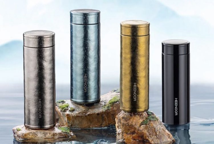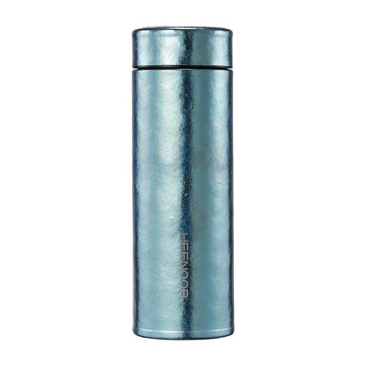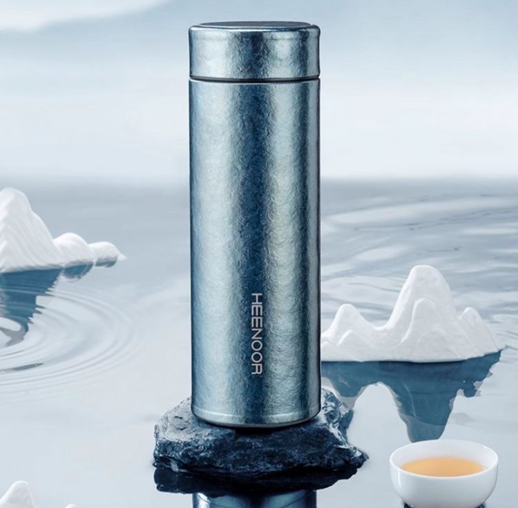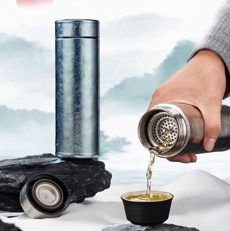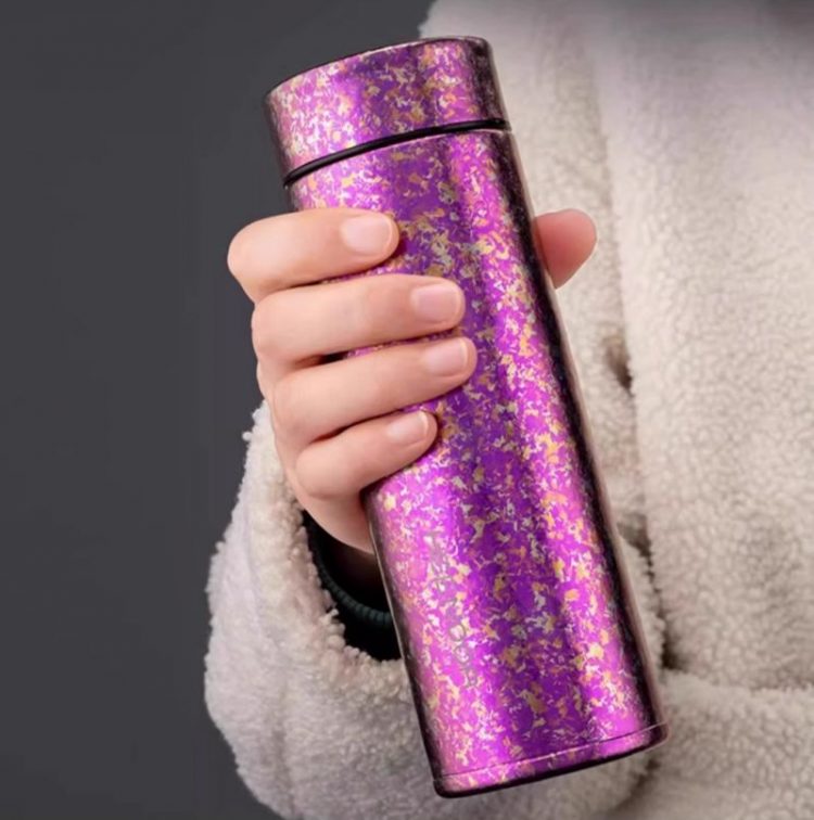 希诺 heenoor 纯钛保温杯超轻耐腐蚀,无金属异味,表面阳极氧化自然呈色,内部带茶隔,用于日常携带饮水喝茶。