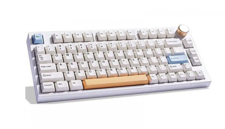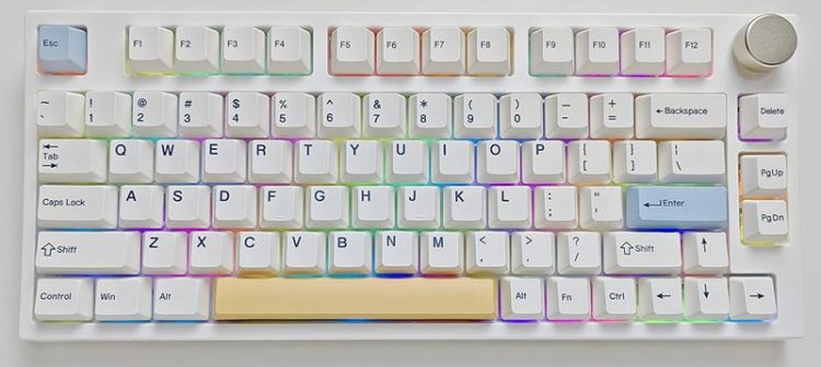 Keydous NJ80 三模 75% 配列机械键盘支持热插拔、RGB 背光,带多媒体旋钮,可编程键位,多种配色,适合游戏、办公。