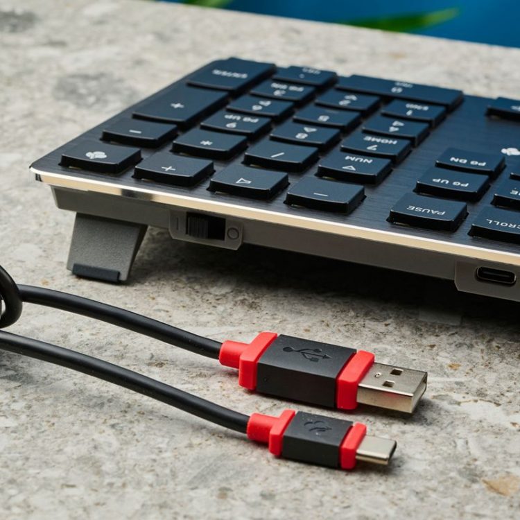樱桃 CHERRY KW X ULP 2.0 MINI 超薄紧凑型机械键盘充电使用,采用 MX 矮轴,取消数字键盘,自带氯丁橡胶保护套,小巧便携,带白色背光,支持 10 档亮度,功能键设计了彩色 LED 背光,适合随身携带,用于移动办公文字输入。