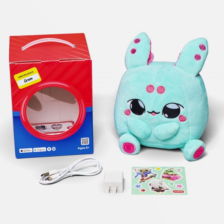 CURIO 互动式人工智能毛绒玩具有三个可爱形象,分别叫做 GREM / GABBO / GROK,适合 3 岁以上儿童,没有屏幕,内置扬声器和麦克风,锂电供电,WiFi 联网后,可和孩子聊天对话,讲故事(目前仅支持英文),是孩子的陪伴宠物。