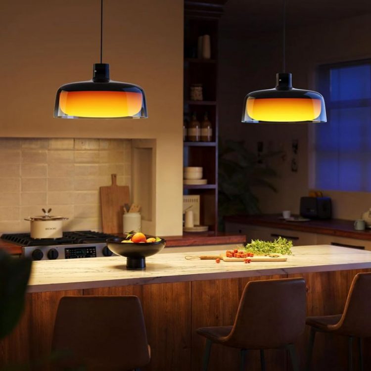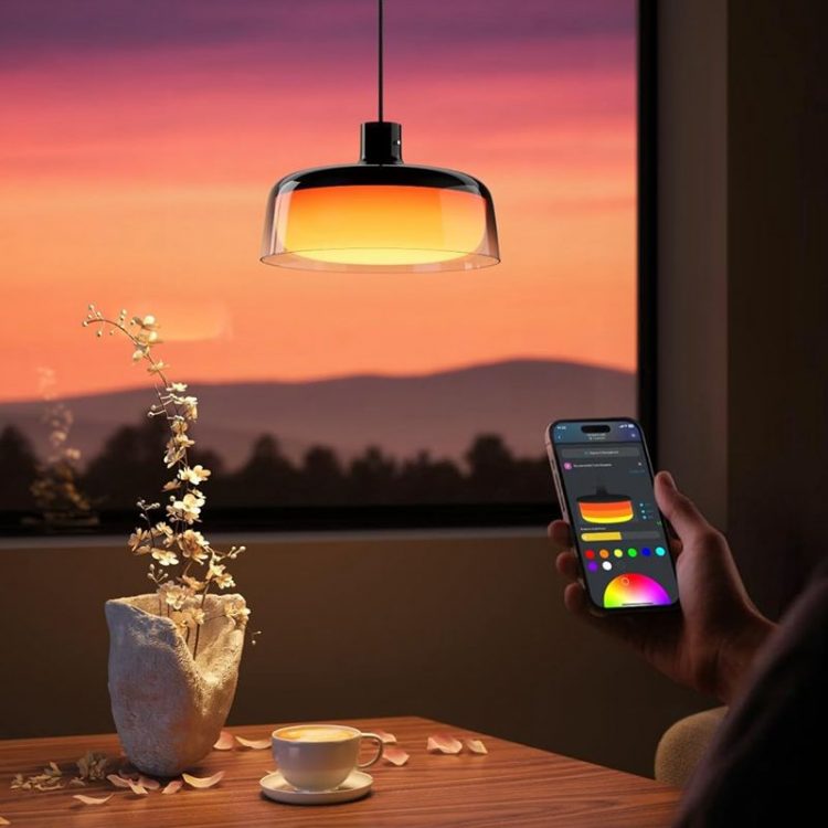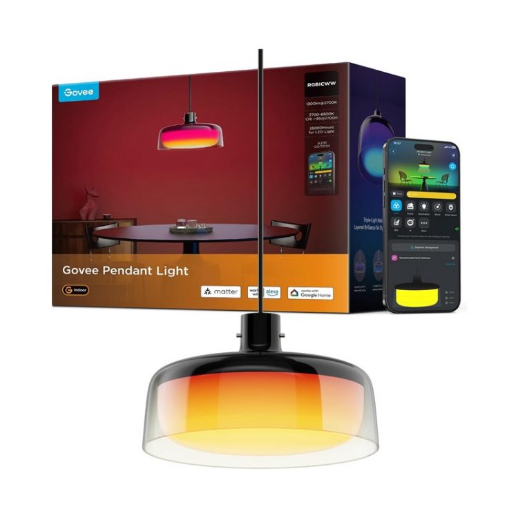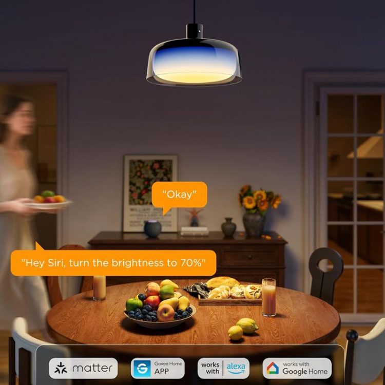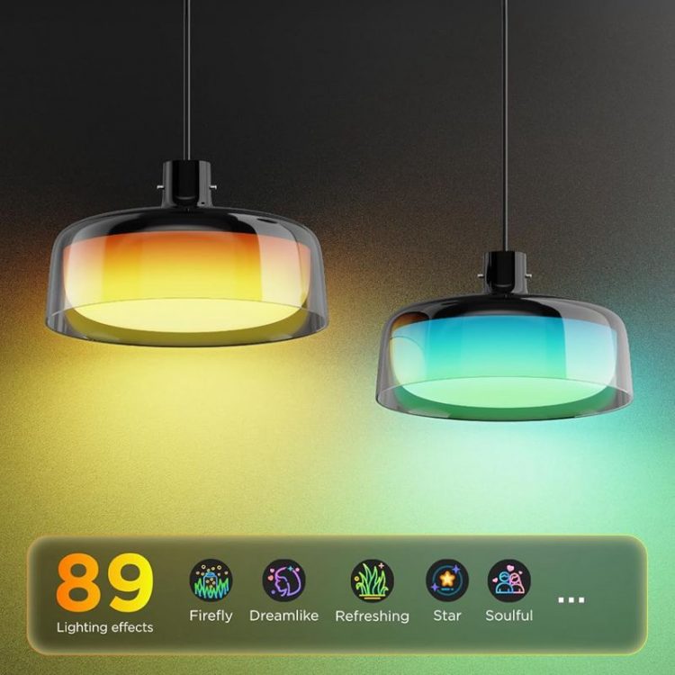 Govee 智能吊灯采用 LED 光源, 1600 万种色彩,三层分区(侧面、环形和底部向下)独立照明,可自定义灯光,打造沉浸式照明体验,改变您的用餐氛围。