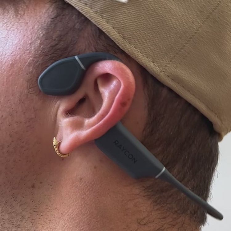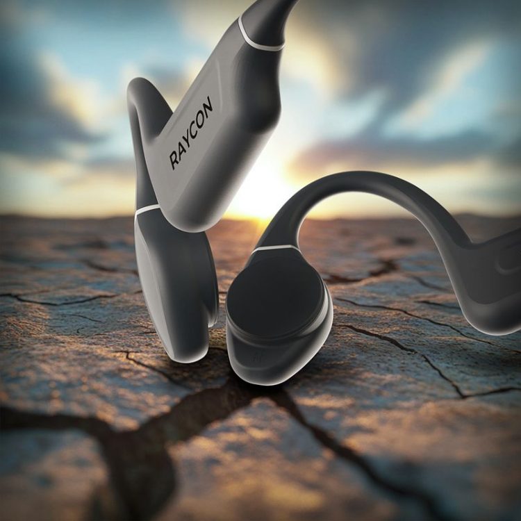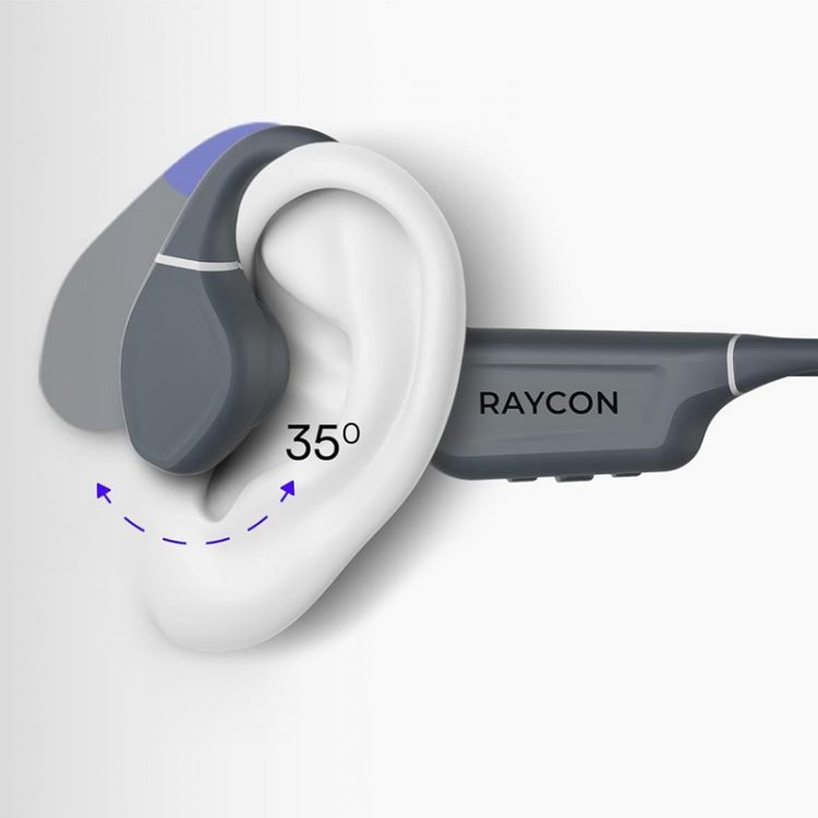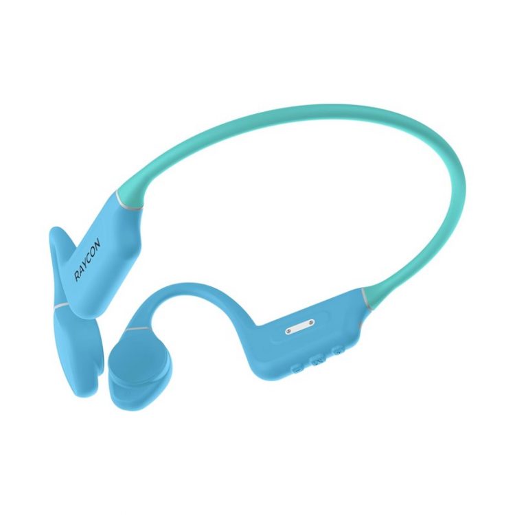 Raycon 骨传导耳机无线蓝牙连接,轻巧设计,IP68 防水,续航持久,佩戴舒适,可调节传导耳塞调节音量的同时,开放耳道,可听到环境声音,适合户外、骑行、跑步,保证运动安全。