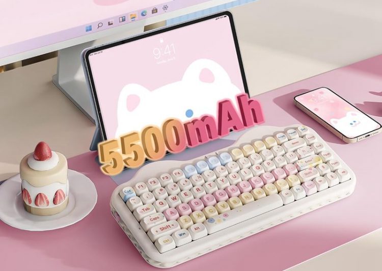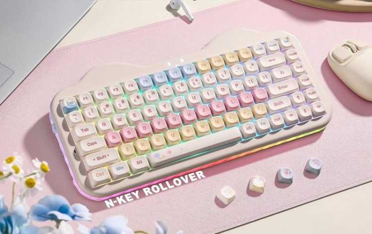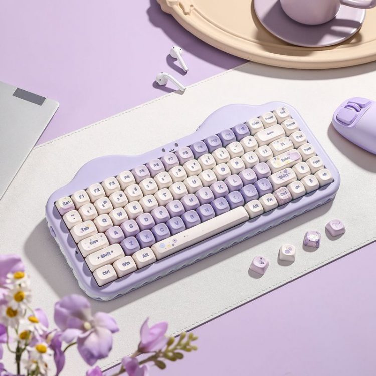 键设宇宙 YUNZII C75 键盘模拟蛋糕色彩和外观,造型可爱,支持三模连接,适合女生使用。