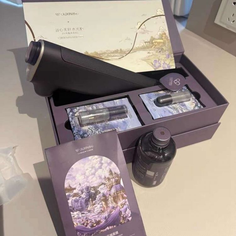 谷心 GX·Diffuser 水光炮补水注氧美容仪将护理精华液,通过空气高压雾化促进渗透,进行面部肌肤护理,促进吸收,保养肌肤。