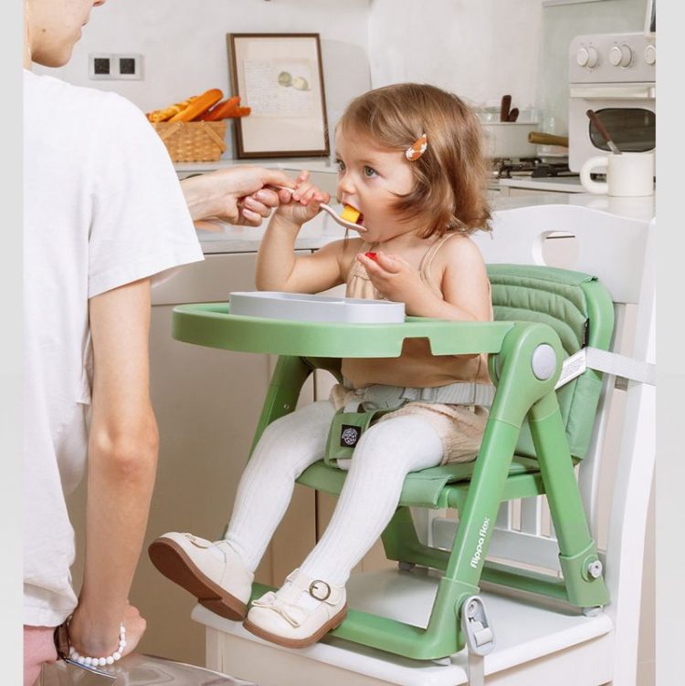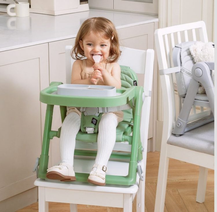安途美 Apramo Flex 儿童餐椅可折叠收纳,方便携带,打开用作宝宝就餐固定座椅,方便孩子用餐。