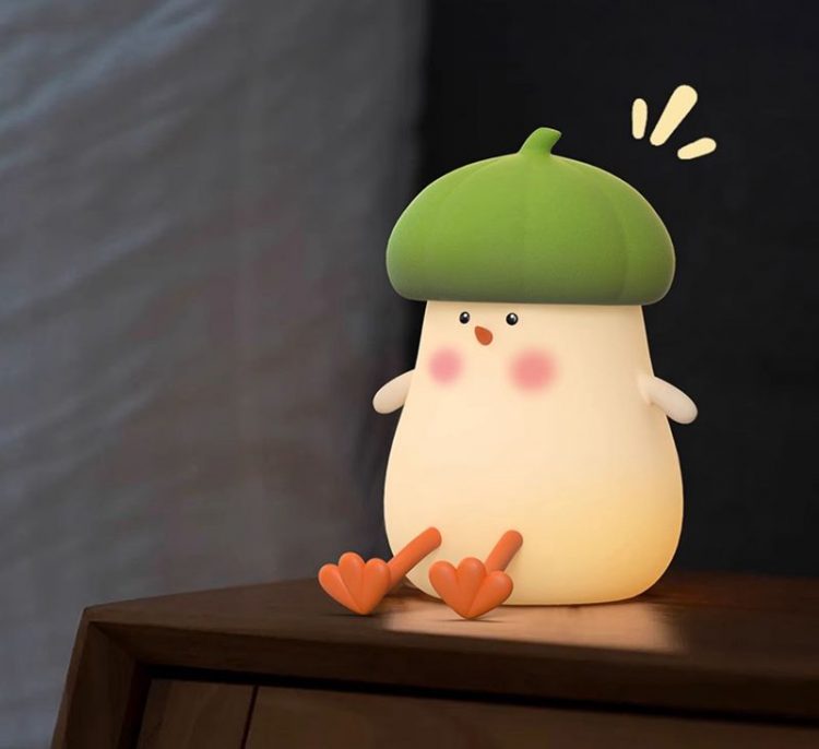 呆萌菜鸡伴睡灯采用小萌鸡造型,硅胶亲肤材质,拍打感应开关,定时关闭,用作卧室床头感应氛围灯。