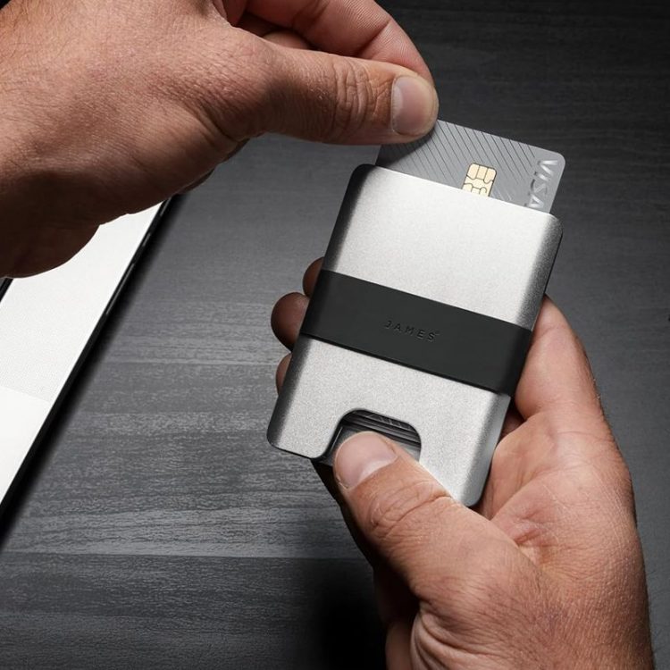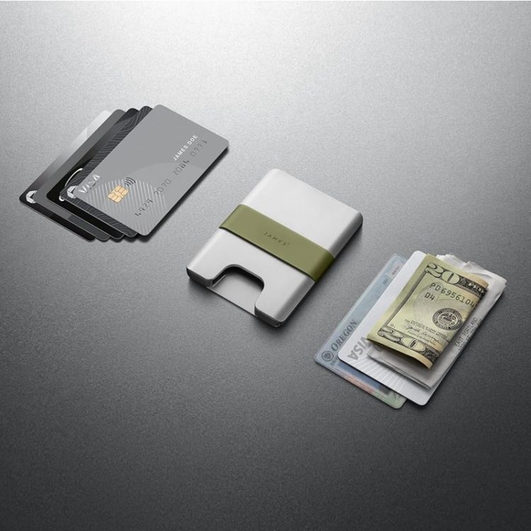 JAMES The Lowe EDC 卡包极简纤薄设计,数控机床 CNC 加工航空铝材质,屏蔽 RFID 信息,保证用卡安全。采用 Pinch-Tech 系统,牢固锁定 1-6 张信用卡。铝制卡夹内部设有一个缺口,只需拇指轻轻一推,卡片即可自然向上滑动或者从上方按下收回。卡夹外部设计了嵌入式硅胶带,可用于存放少量纸币或收据。