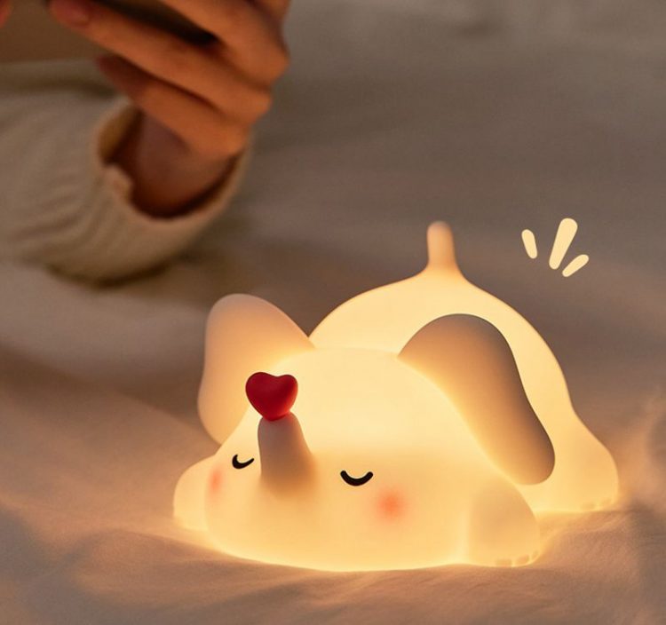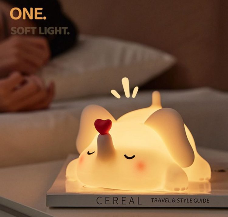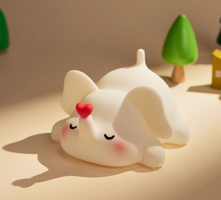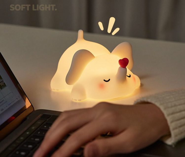 爱心小象硅胶拍拍灯萌趣可爱,拍打开关,三挡亮度,用作伴睡小夜灯,也可用作桌面手机支架。
