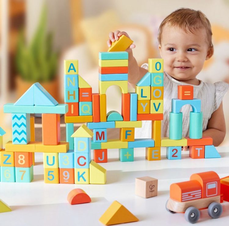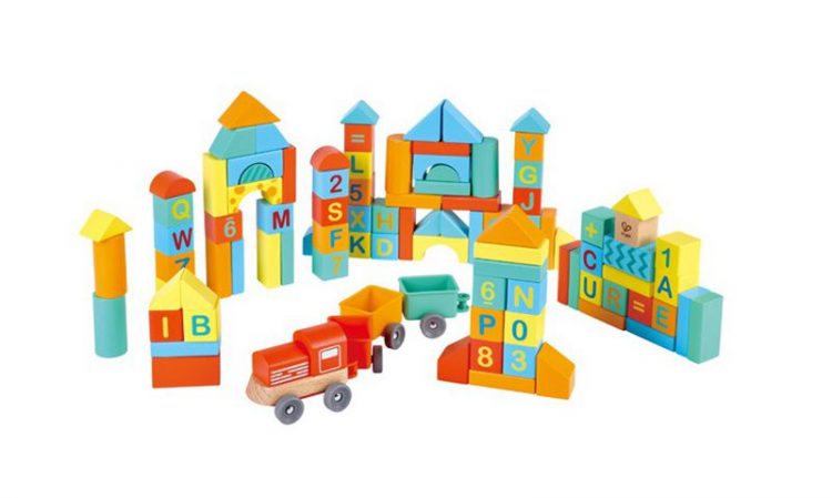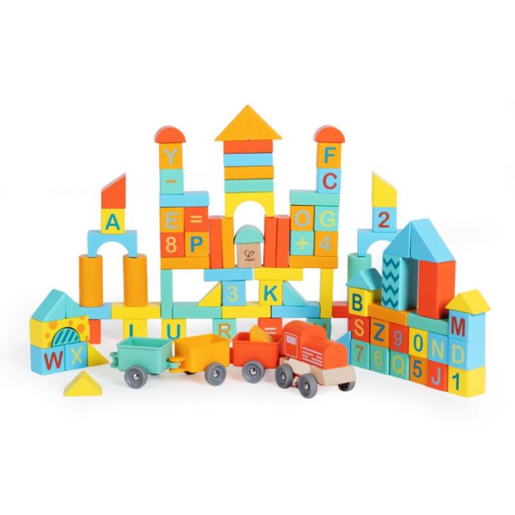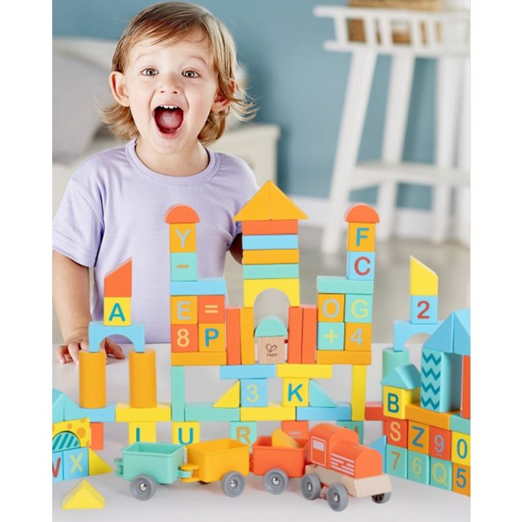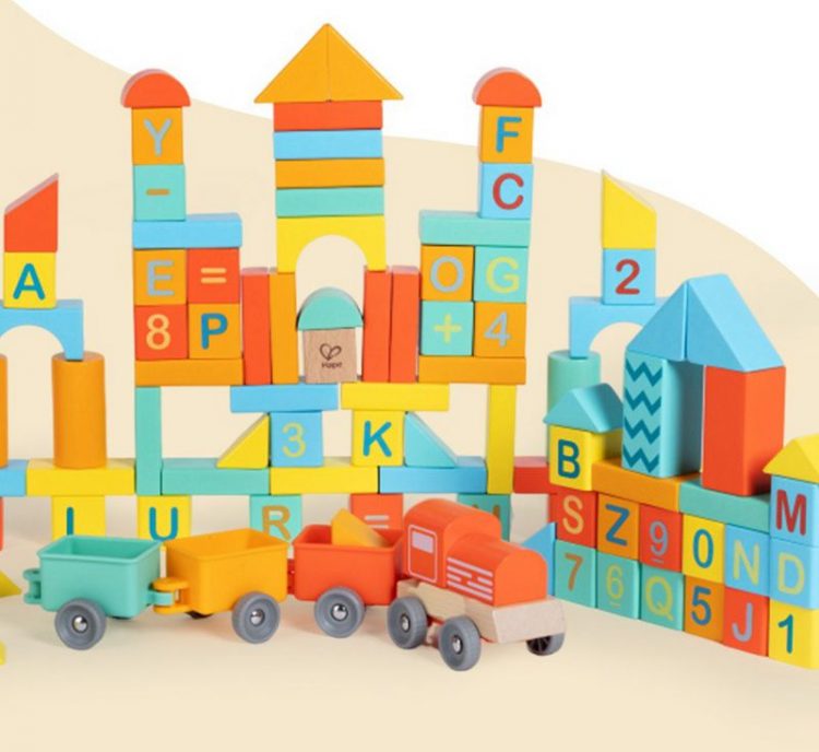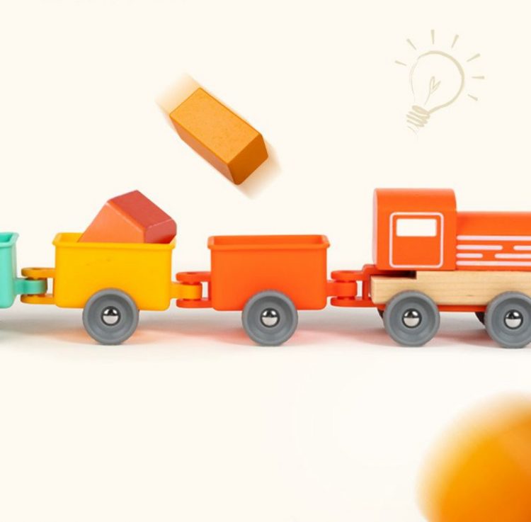 智趣乐园火车积木套包括火车头、车厢和多种形状积木,适合幼龄儿童搭建玩耍。