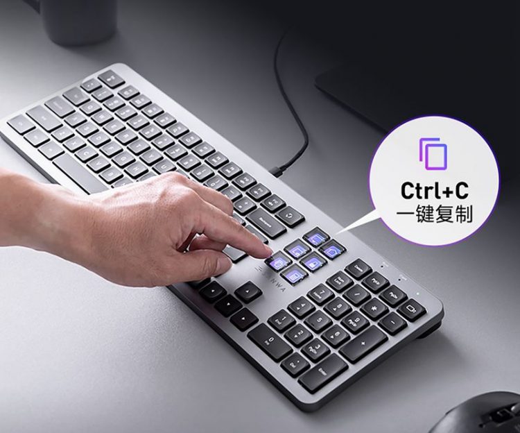 山业 SANWA 可视智能有线键盘设计了六个宏按键,支持 LCD 显示,自定义功能,方便视频剪辑、设计等工作时,简化操作,打造专属配置。