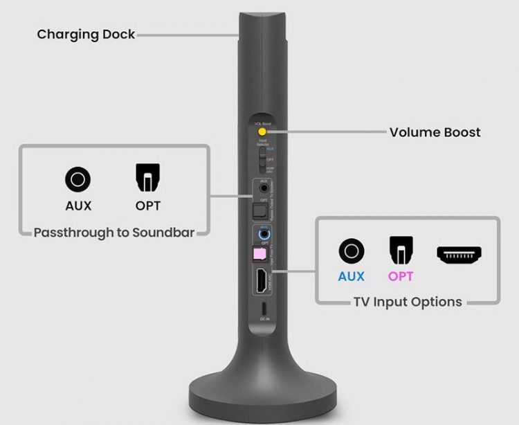 Avantree Opera Plus 看电视用无线耳机耳罩式设计,佩戴舒适,可直连支持蓝牙播放的智能电视,对非蓝牙型号电视,配有充电发射器底座支架,可使用随附的光纤或 AUX 发射器,将音频发射器底座支架连接到电视音频输出口,便可无线收听电视声音信号,调节到自己的音量欣赏节目,而不会打扰他人。通过底座发射器连接的话,音量比普通耳机高 20%,尤其适合老年人和听力障碍人士,或者深夜看电视时使用。可同时使用光纤或 AUX 连接条形音箱播放外放声音。