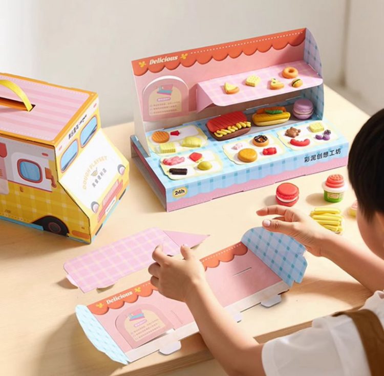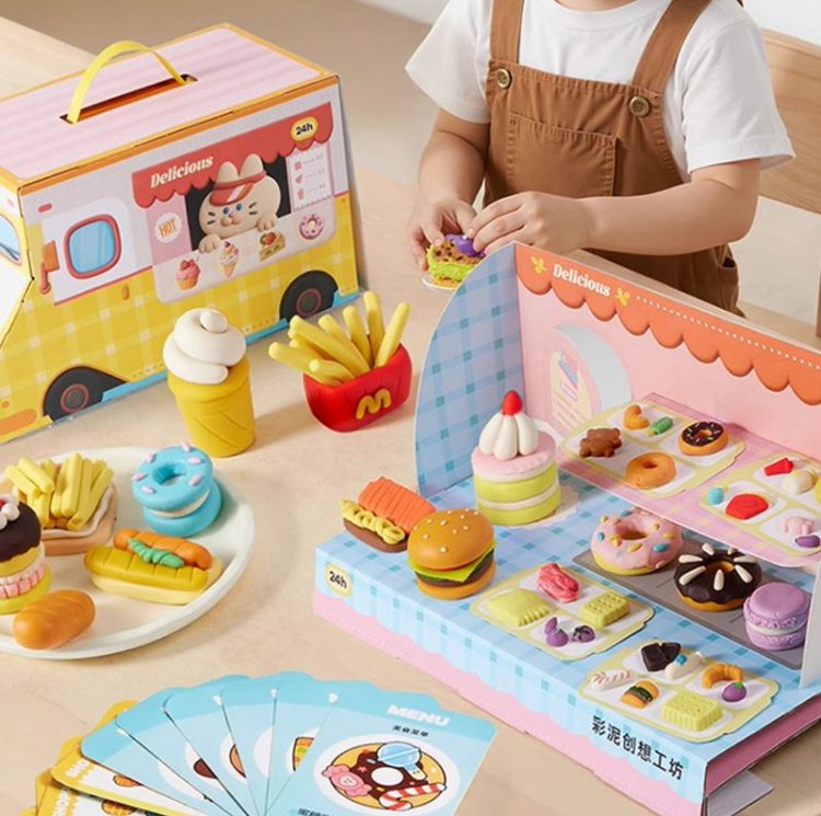 美乐童年 Joan Miro 彩泥美食餐车配备了各种模具,可用多彩橡皮泥制作各种面点,礼盒可重新折叠成餐车,让宝宝来过家家制作、销售面包、馒头等餐点。