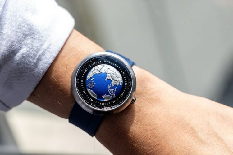 玺佳 CIGA design 蓝色星球腕表采用微雕地球表盘,以创意让人们倾听地球的脉搏,传递守护家园的理念。