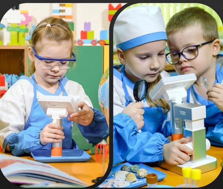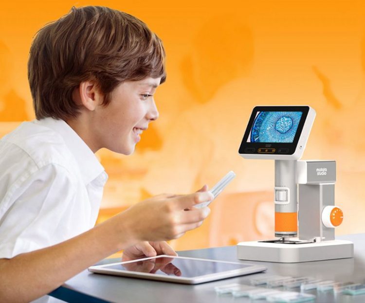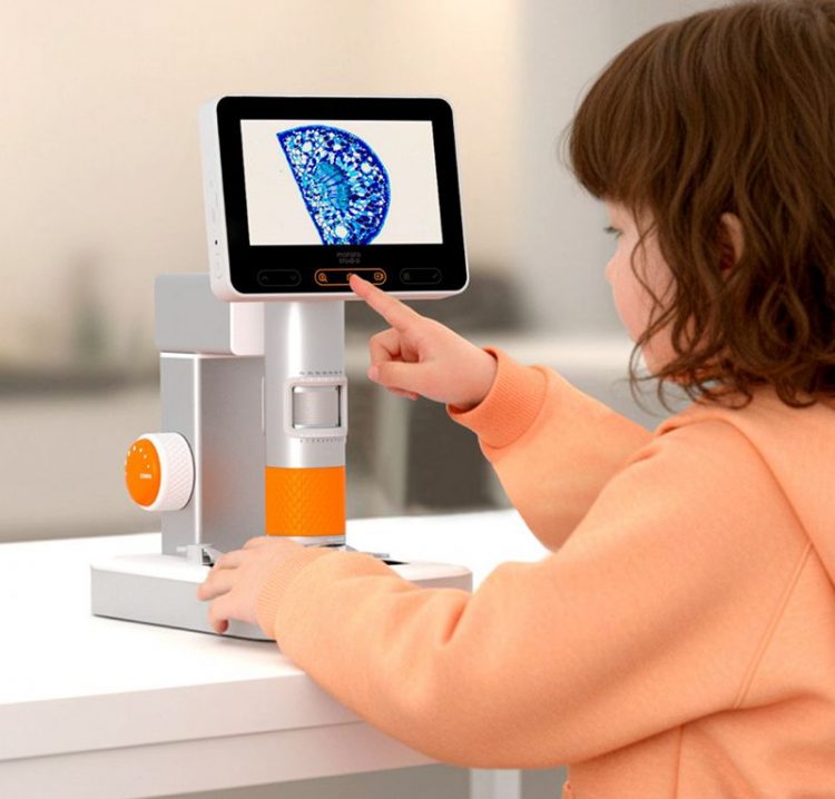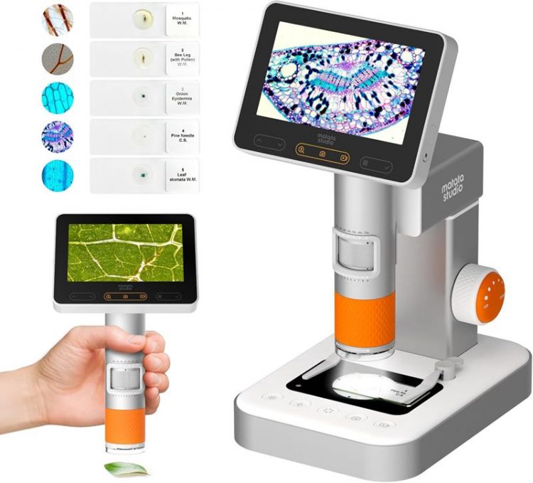 玛塔 Matatalab 儿童显微镜自带显示屏和支架,也支持手持使用,配备标本,大屏显示放大物体,无极变焦,一键拍照录像,探索自然奥秘。