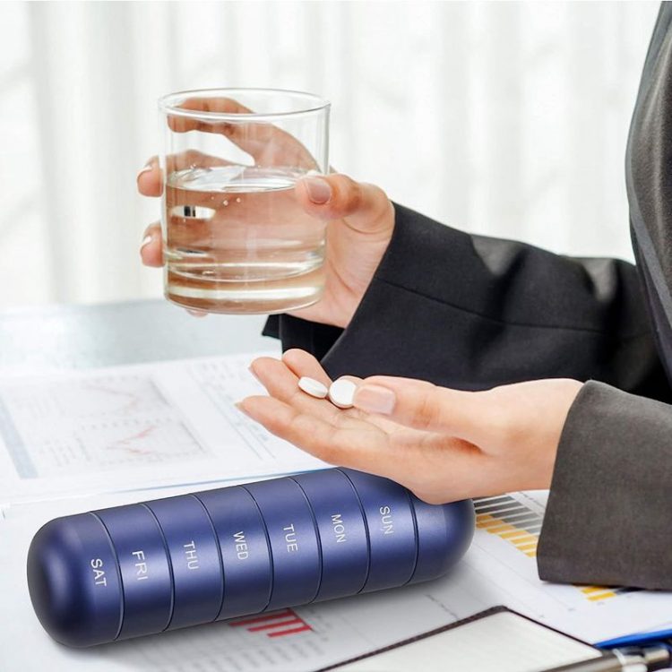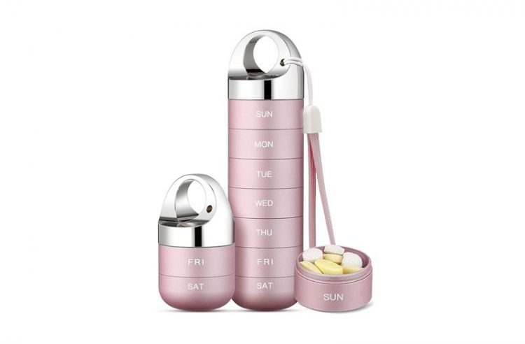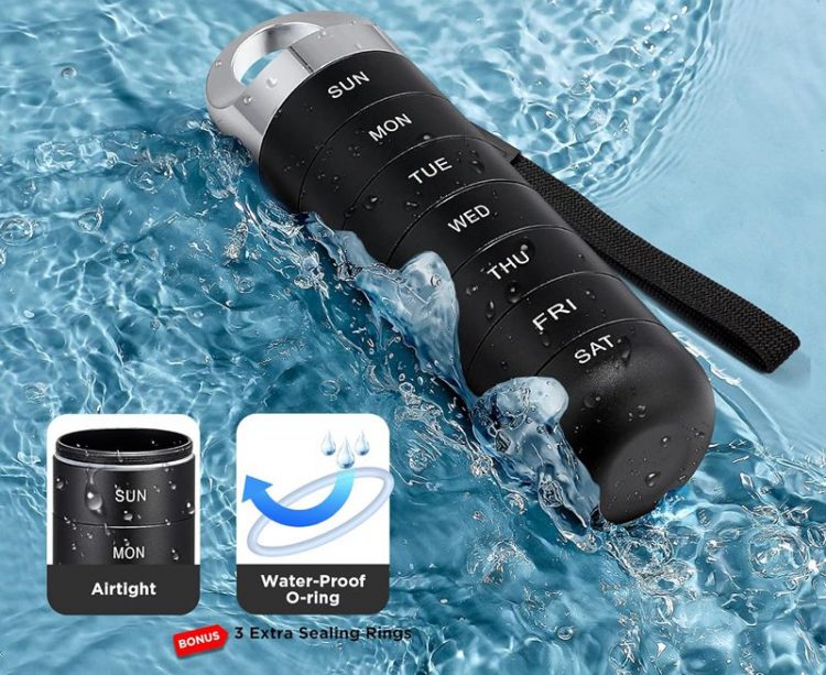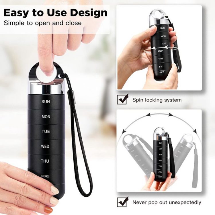 金属分装药盒铝合金材质,支持1周 7 天药片分装,密封防水,方便旅行携带。