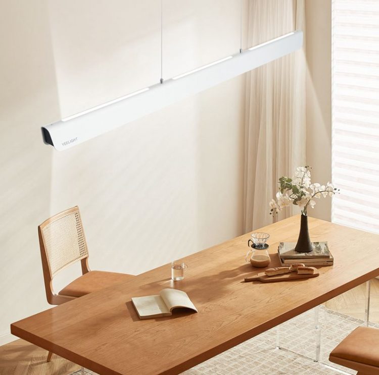 易来 yeelight 一字长条吊灯上下光源,支持智能调光、语音控制,高显色指数,防闪烁护眼,适合用作餐厅灯。