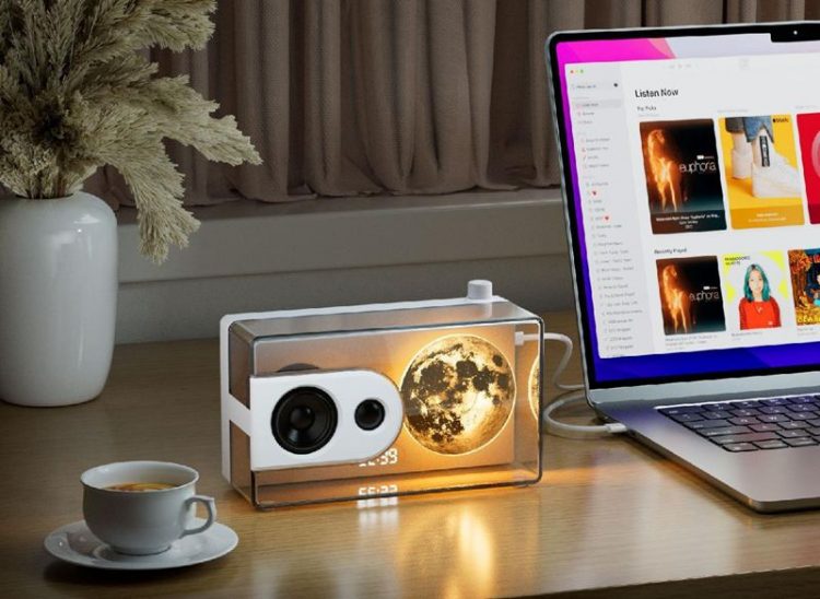 蓝朗 M6 月光宝盒无线蓝牙琉璃音响透明外壳,带氛围灯和时钟显示,双频播放音乐,还原音乐之美。