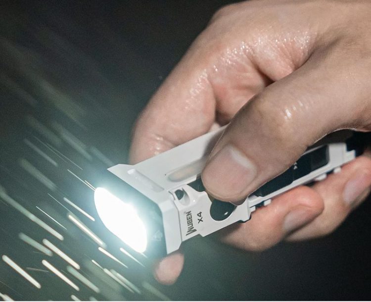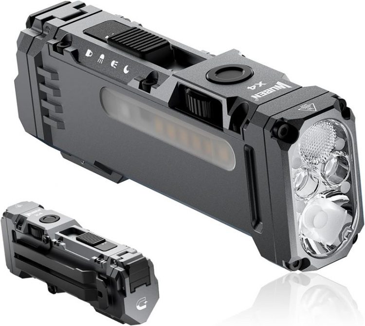 务本 Wuben X4 强光手电筒采用高强度铝材外壳,坚固便携,主灯高亮远射,带 RGB 彩光侧灯,磁吸底部,适合多种使用场景。