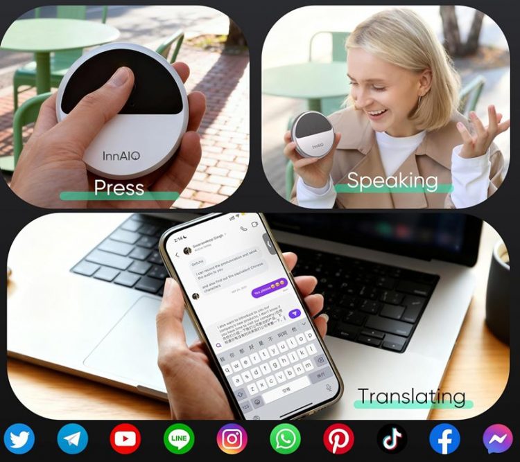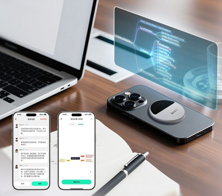 来画音诺 InnAIO T10 磁吸翻译机兼容 MagSafe,可固定在手机背面,支持毫秒级翻译,声音克隆,实现会议记录、文本整理、同步翻译,同声传译,是出国神器。