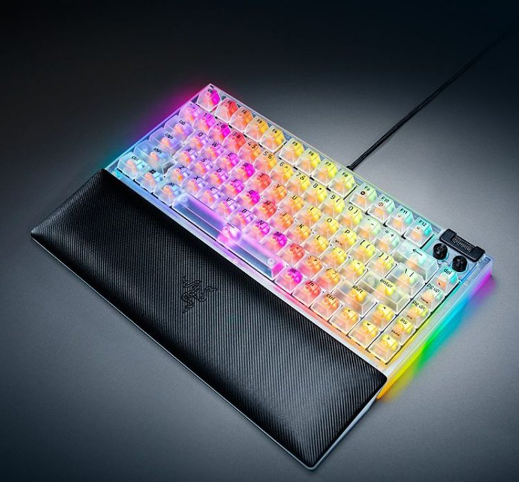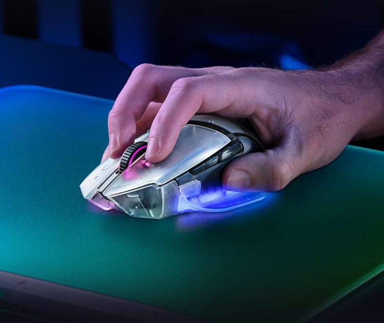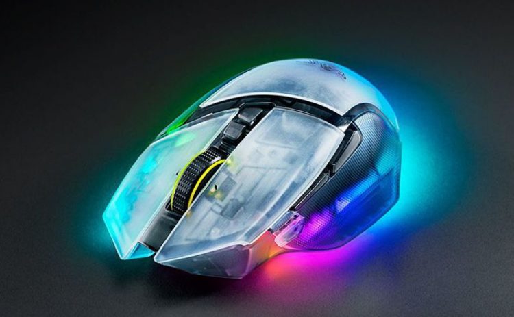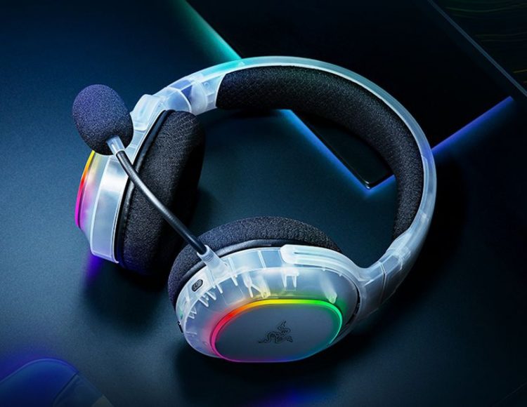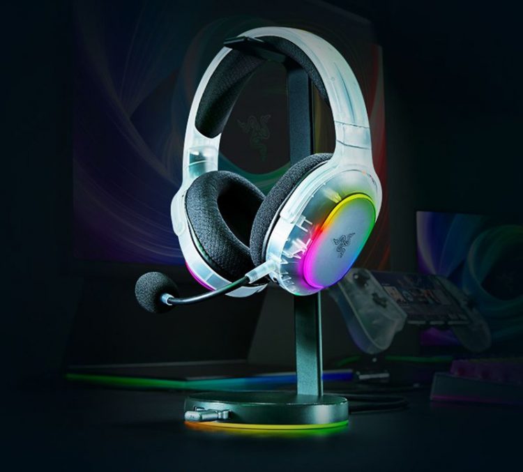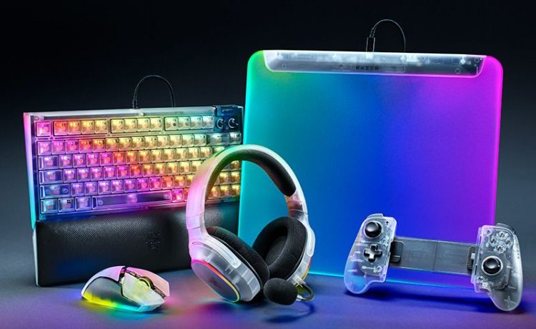 雷蛇 Razer 幻影白巴塞利斯蛇电竞游戏鼠标垫键盘耳机套装采用半透明白色外壳,RGB 幻彩灯光,三模连接,用作全套游戏操控。