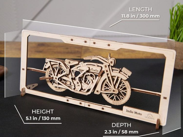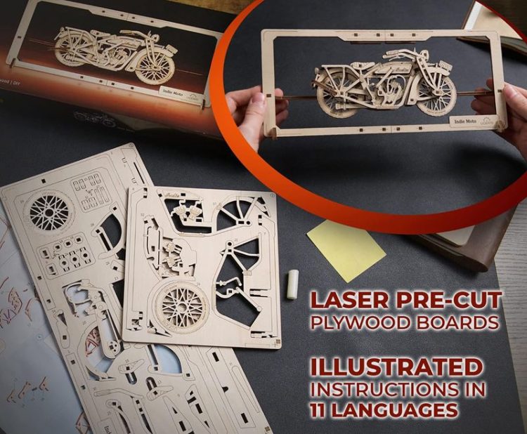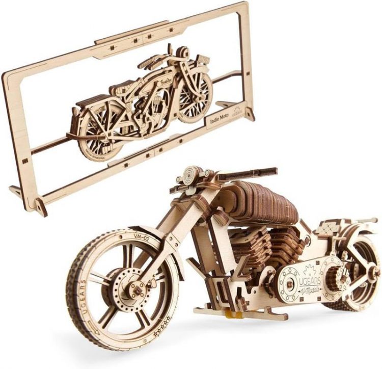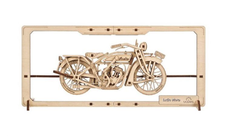 乌格 Ugears 印第安纳摩托模型拼装积木还原上世纪四十年代经典摩托车造型,原木激光预切割,自己 DIY 动手组装,完成后用作摆件。