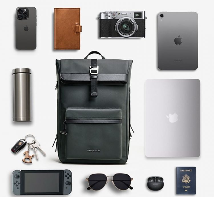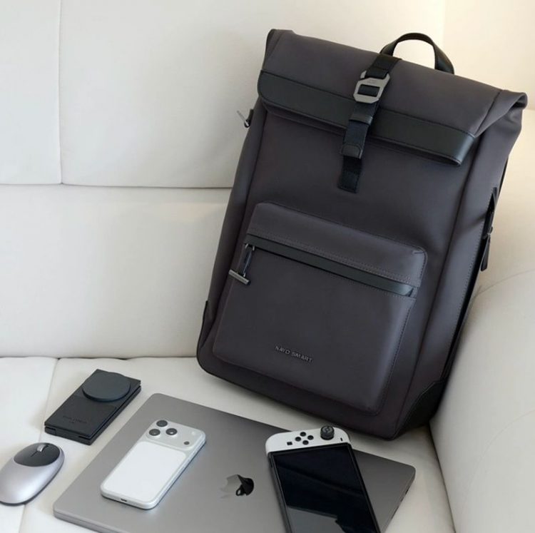 Nayo Smart H6 双肩背包采用杜邦防水面料,折边设计,L型大口径拉链开合,独立数码仓,用作通勤、商务背包。