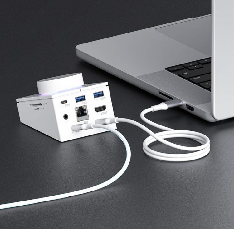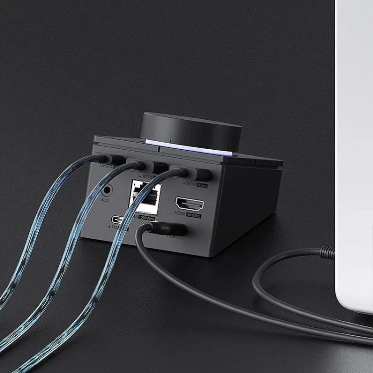 海备思 Hagibis USB 音量调节旋钮拓展坞连接设备 USB 接口,支持设置快捷按钮、音量旋钮,还可用作多功能扩展坞,方便外接电脑配件。