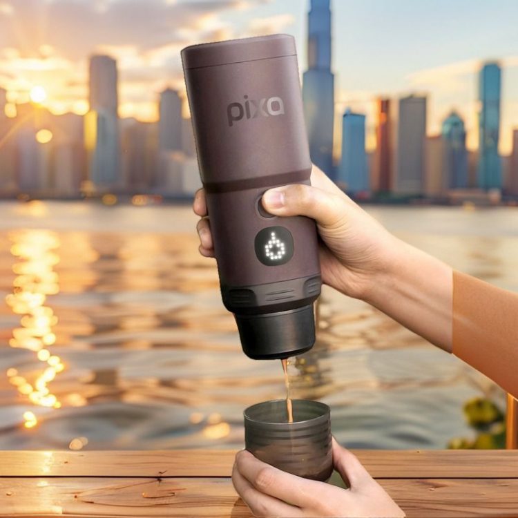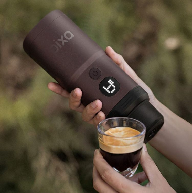 沃咖科 WACACO Pixapresso 便携式电动咖啡机充电使用,支持咖啡粉、咖啡胶囊,可加热水,在户外萃取制备意式浓缩咖啡,方便外出使用。