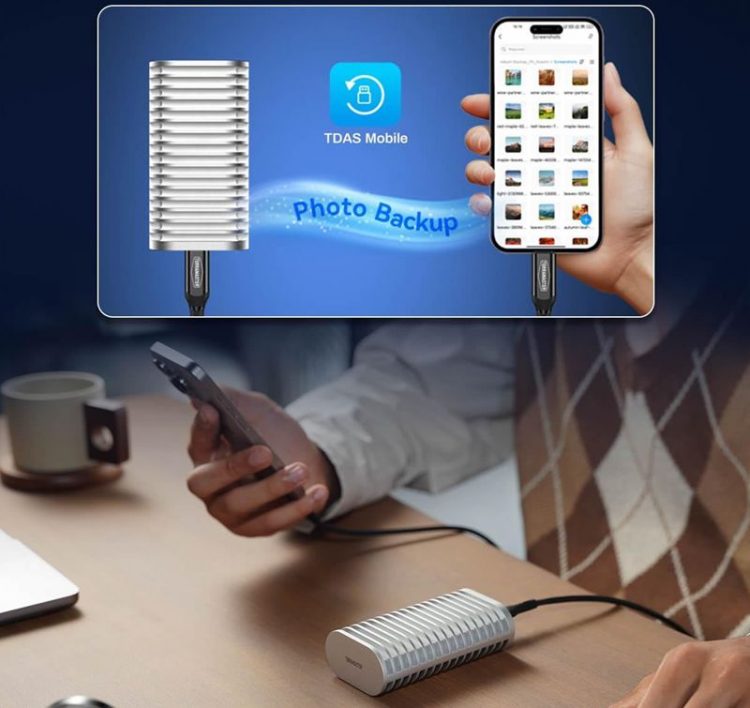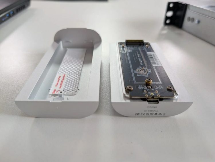 铁威马 TerraMaster D1 SSD Plus 固态硬盘盒支持雷电接口,全铝鳍状高效被动散热,可达到 40Gbps 传输速率,用作存储扩展,方便数据传输、转移。