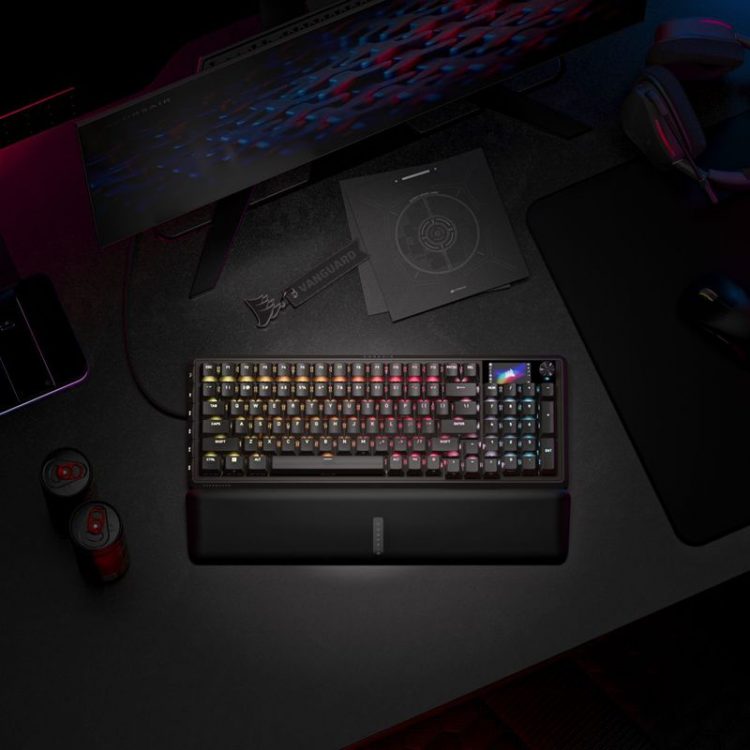 美商海盗船 Corsair 先锋 Vanguard PRO K70 机械键盘 96 键紧凑布局,带全彩 LED 显示屏和多媒体旋钮,支持自定义宏按键,可选磁轴,8K 轮询率,提供极致响应速度。