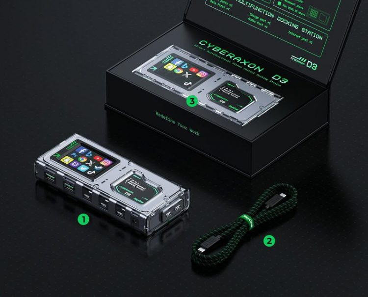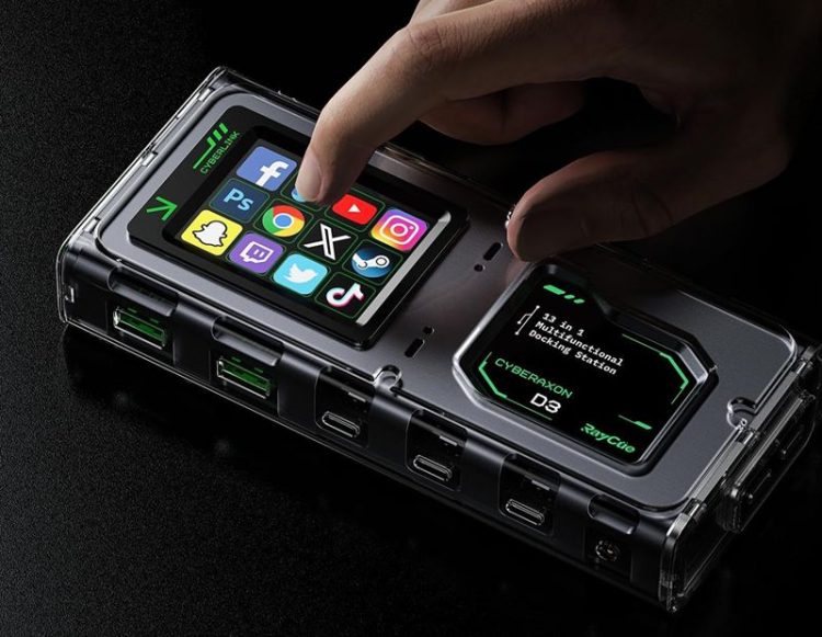 沁泽 Raycue CyberAxon D3 13合1 多功能拓展坞配备 2.4 英寸 IPS 触控屏,支持 12 个自定义快捷键,用作 USB HUB 的同时,支持一键启动多个应用,方便电脑快捷操作。