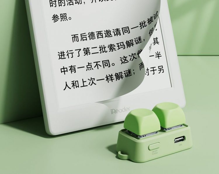 翰林阅 Free2 小键盘电子书翻页器采用机械键轴,按键舒适,蓝牙连接手机、平板等设备,用于操控阅读翻页、刷短视频、切换音乐等操作。