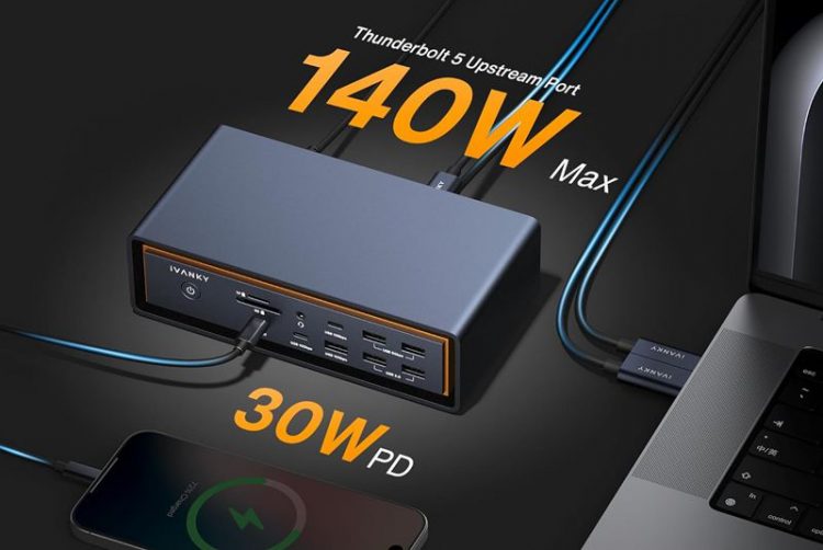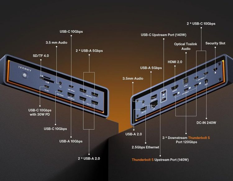 iVANKY FusionDock Max 2 23合1 雷电 5 扩展坞可实现三屏 6K 显示,尤其适合 MacBook,扩展多屏,方便给移动设备供电,外接多个其他扩展外设。