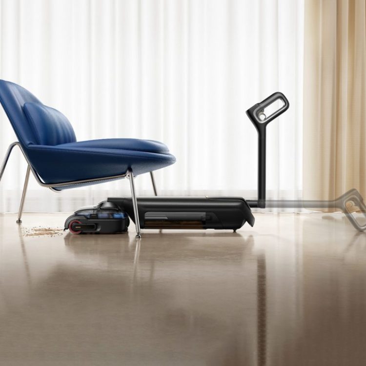 MOVA M50/Ultra 智能洗地机防缠绕设计,带折叠臂,可 180° 躺平清洗家具下面的地面,不用弯腰,使用方便。