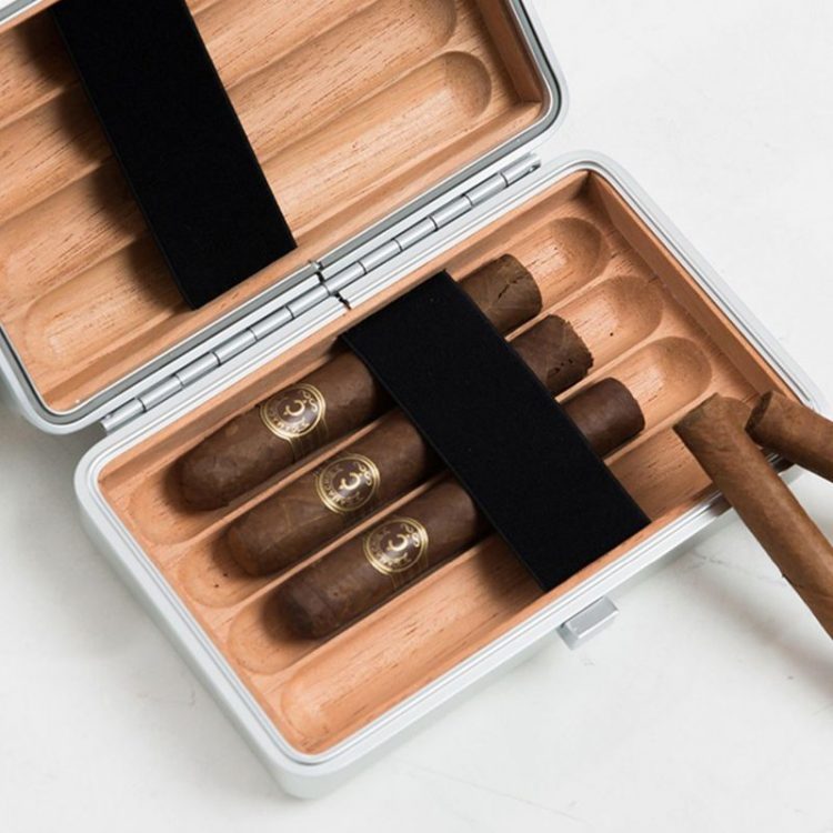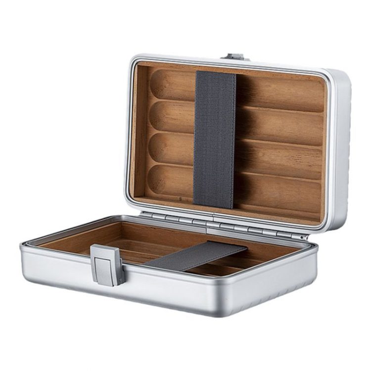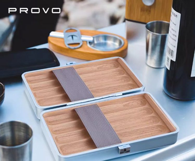 酷麦 Provo 雪茄盒采用铝合金外壳,雪松木内衬,轻巧便携,防震耐摔,方便收纳高档雪茄,旅行时携带。