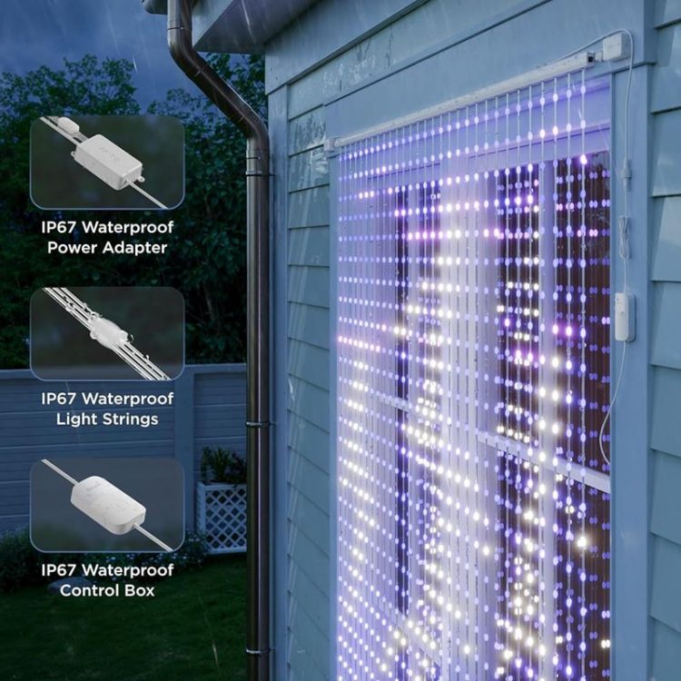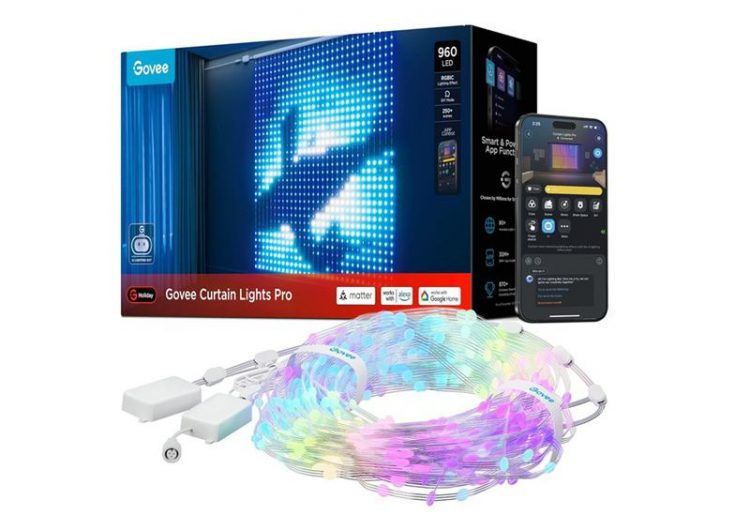 Govee Curtain Lights Pro 升级版智能灯帘配备 960 颗 RGBIC LED 灯珠和新一代 20 倍速控制芯片,1.65 × 1.76 米见方,动态变幻颜色和亮度,支持高达 2000KB 的动画容量,实现复杂的像素动画效果,支持 250 多个预设模式和 10 种音乐同步模式,也支持 DIY 自定义,用作节日、派对或者舞台装饰。