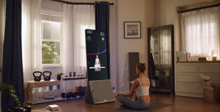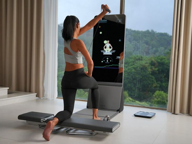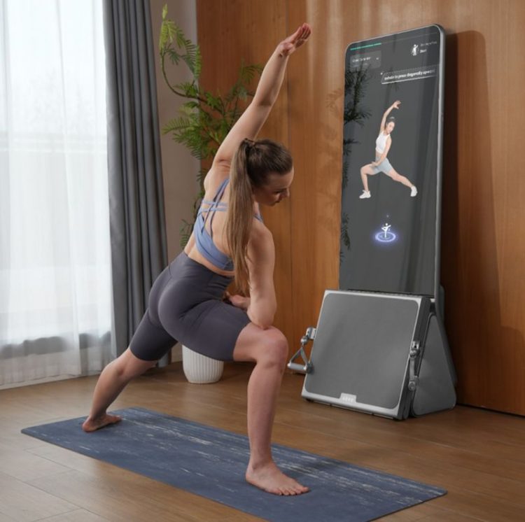AEKE A1 健身魔镜多功能一体机免打孔,直接摆放使用,既是智能屏幕,也是反光镜,用作健身训练指导、家庭娱乐。