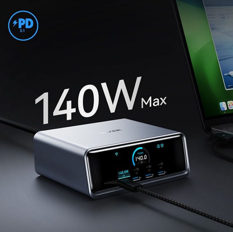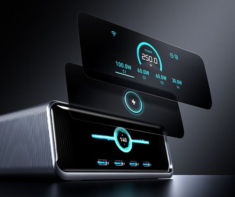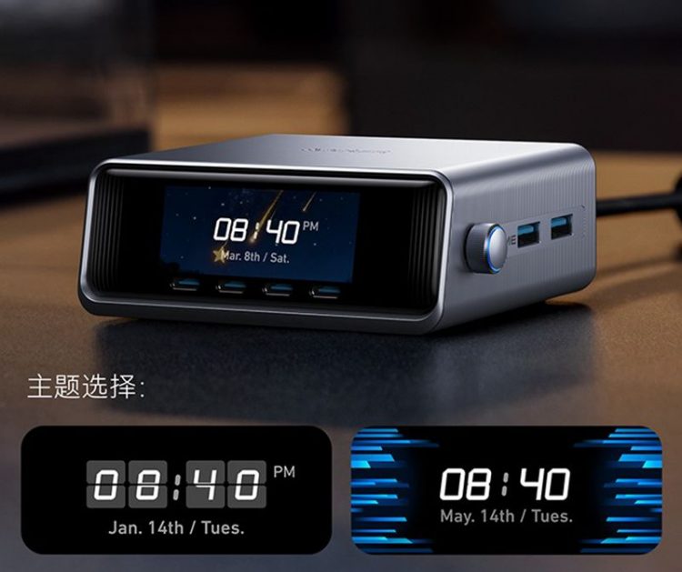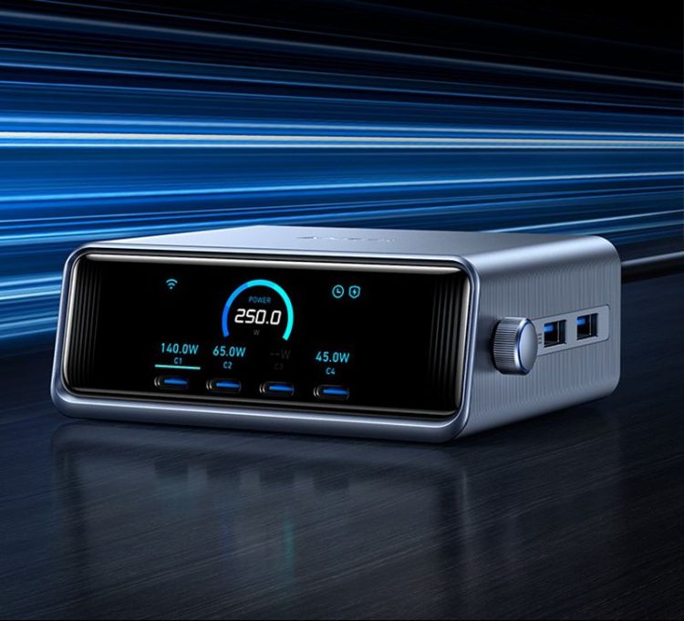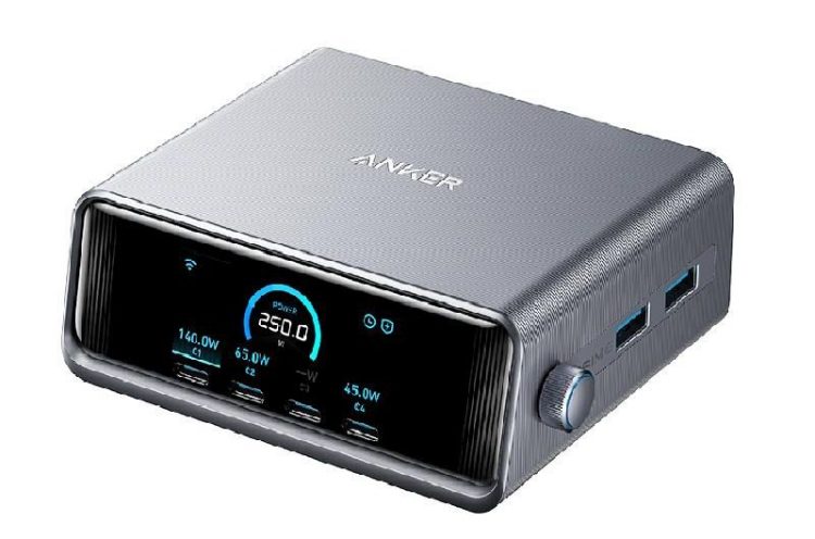 安克 Anker Prime 智能屏显桌面充电站可实现 250W 总充电功率,支持显示时钟、实时充电功率,让办公桌面整洁有序。