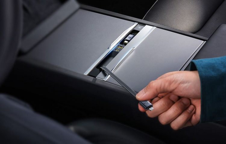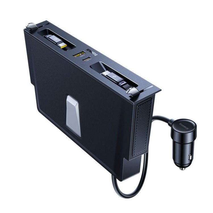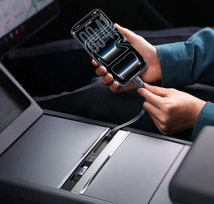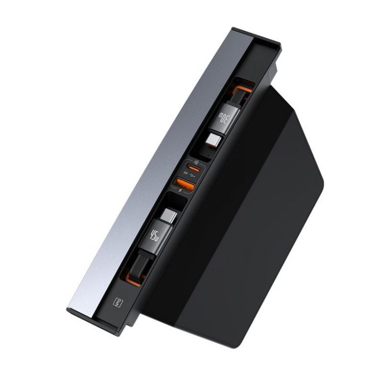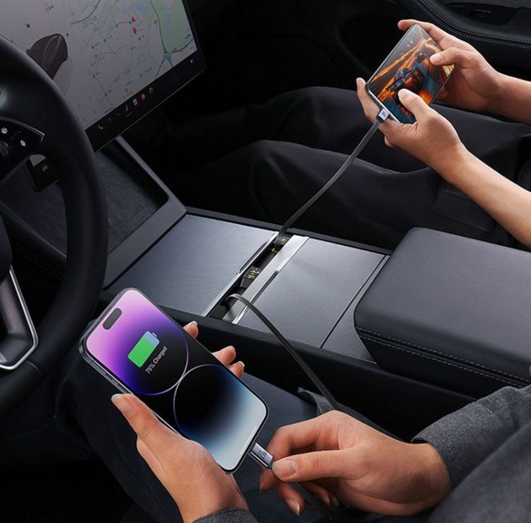 倍思 Baseus 适用特斯拉 Model y 拓展坞采用氮化镓技术,自带充电线,接入点烟器接口,嵌入式安装,实现车载手机快充。