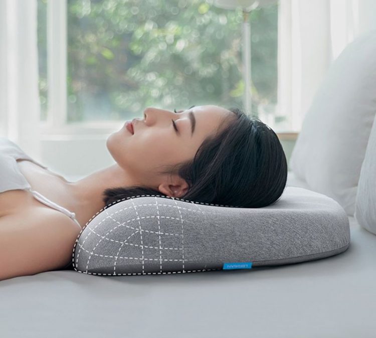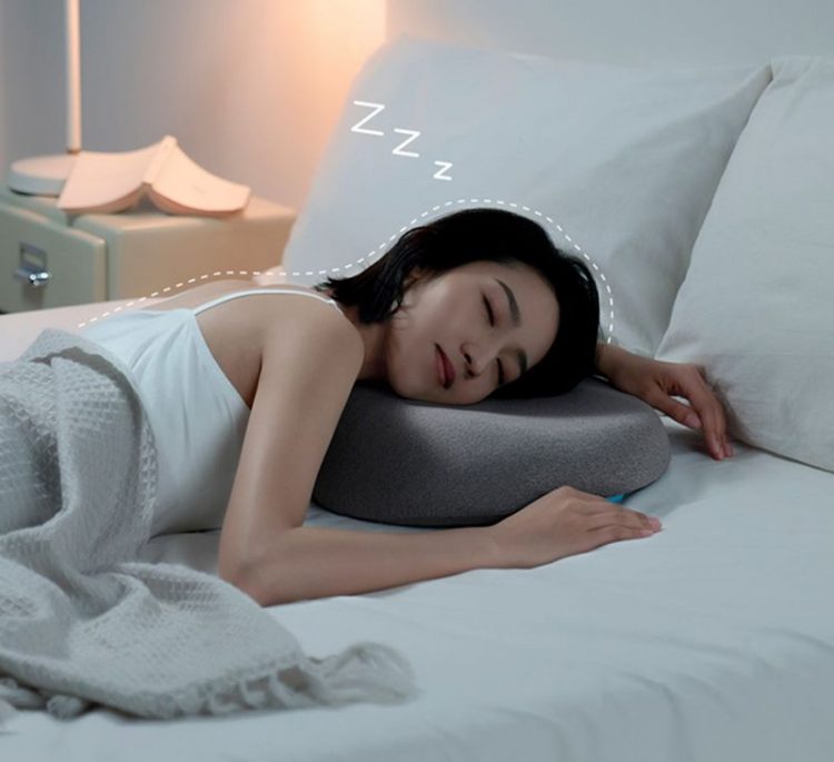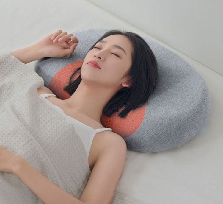 睡眠枕采用记忆棉枕芯,设有气囊按摩和温感热敷,护颈助眠。