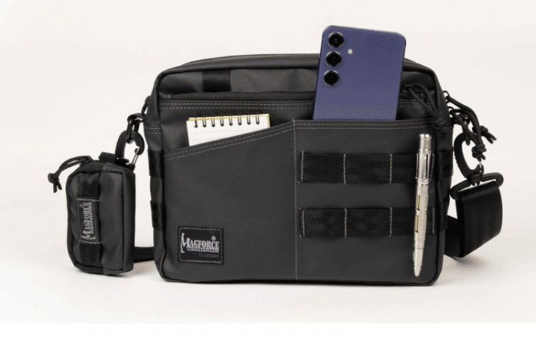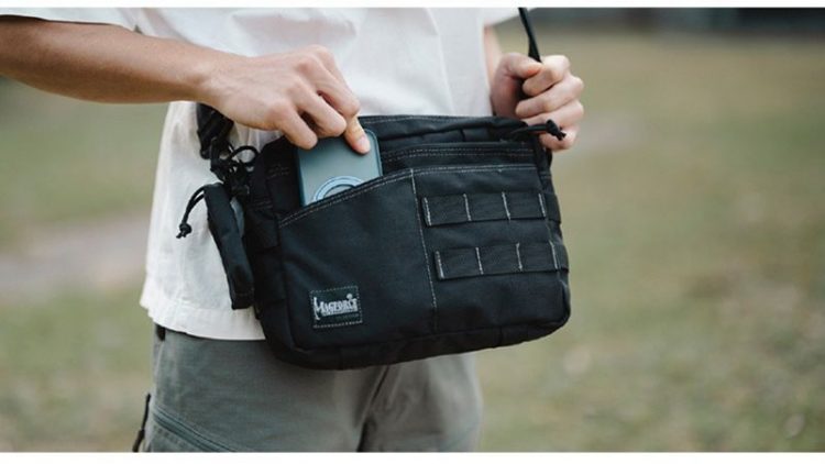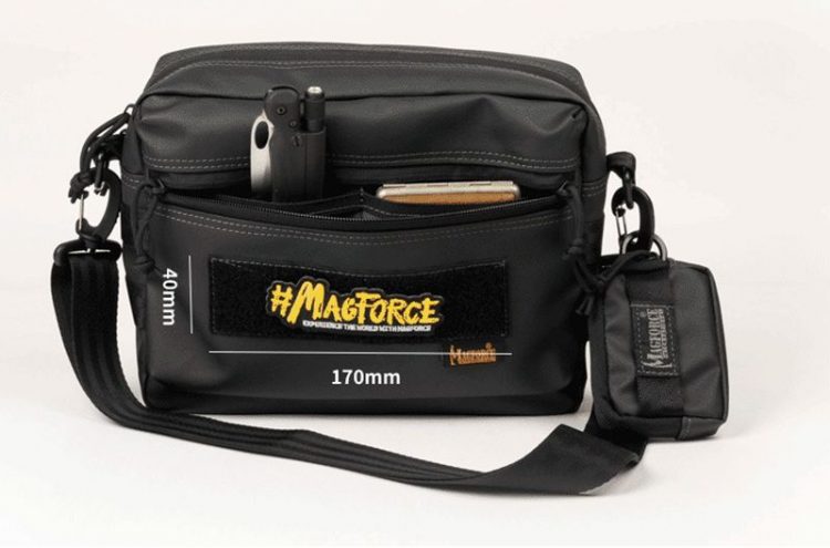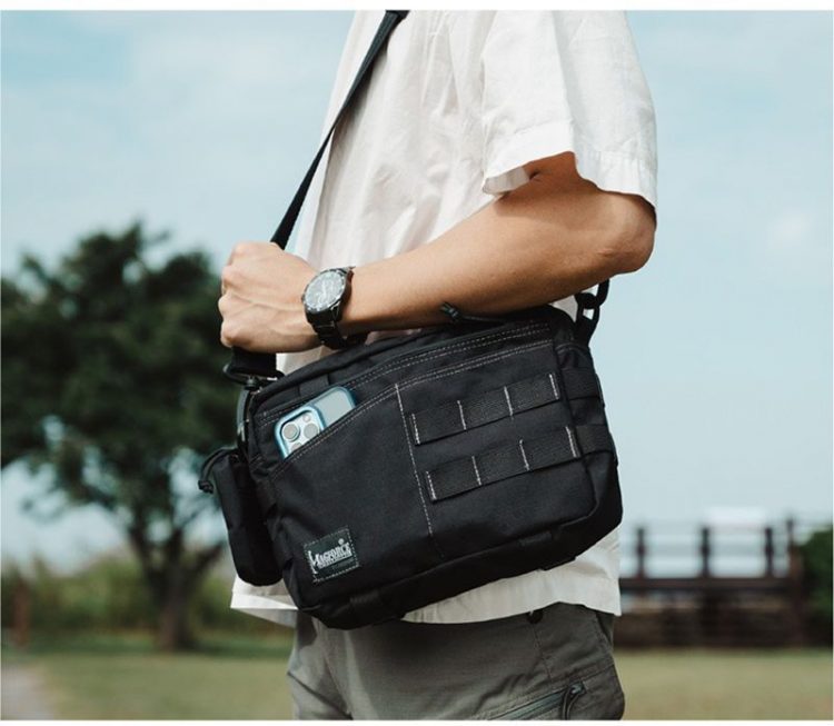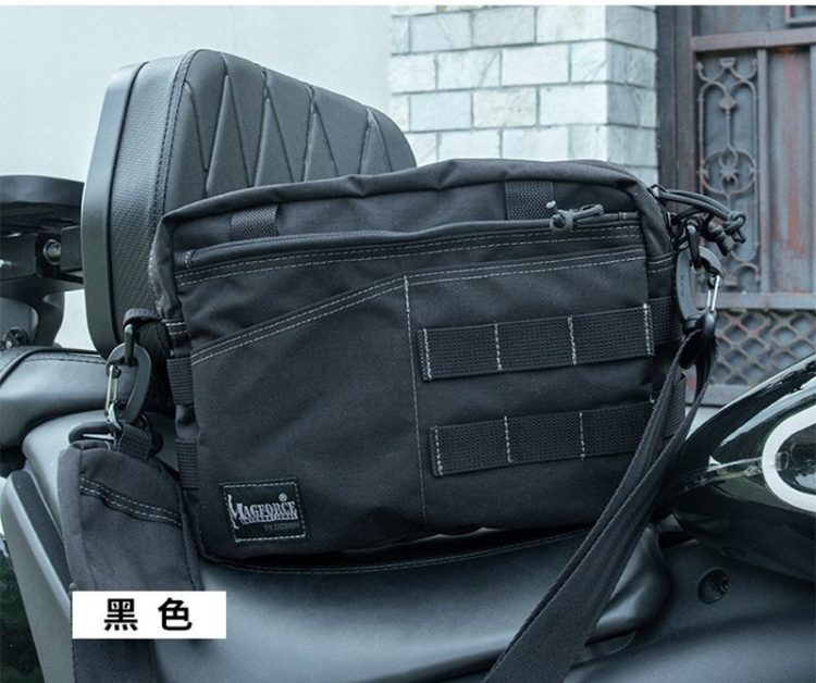 麦格霍斯 MAGFORCE 0346A 斜挎包采用 500D 防水尼龙面料,侧面设计了插袋、魔术贴和织物带模组,方便外挂附件,内部用于随身物品收纳,适合通勤使用。
