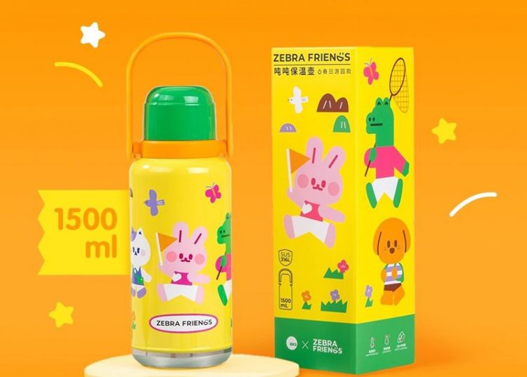 AKS x 斑马 Zebra Friends 不锈钢保温杯真空保温大容量,萌趣图案带提手,方便随时饮水。