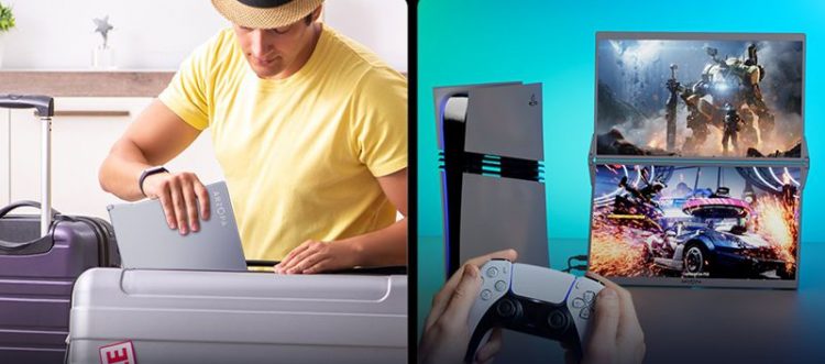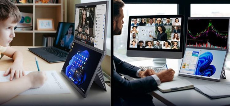 双屏显示器支持折叠携带,打开后用作扩展副屏,双屏异显,提升工作效率。