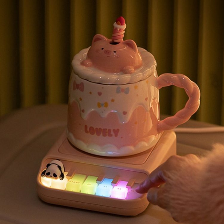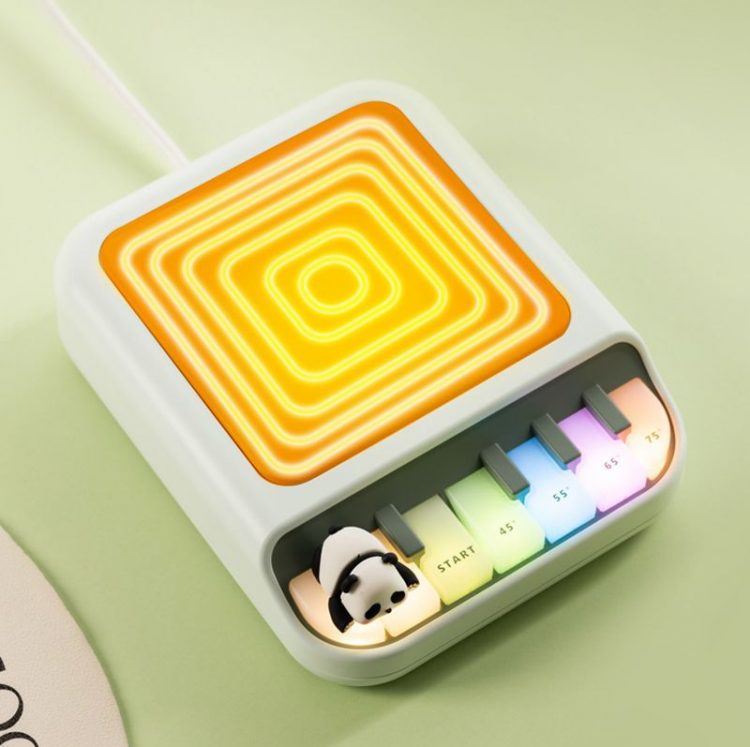 万火 onefire 熊猫恒温暖杯垫采用钢琴键造型,可发光用作夜灯、支持四档温度加热,用于冬日给杯子加热、保温。