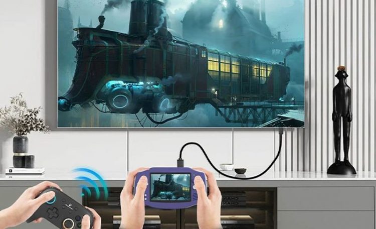 安伯尼克 ANBERNIC RG 34XX 复古掌上游戏机横版设计,支持连接电视,可双机联网对战,满足游戏需求。