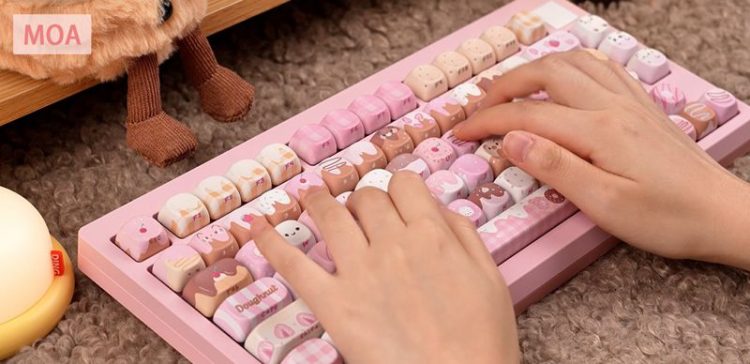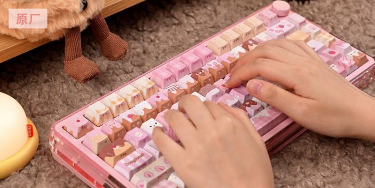 甜绒日记键帽采用 PBT 材质,热升华工艺,侧刻字符,可爱主题。
